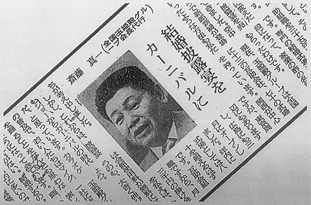 「男の味方?結婚産業の舞台裏」と題して結婚産業の実態を放映。齋藤社長が玉姫殿でのロケ、自宅での家業、スタジオで司会者との対談など大奮闘の番組でした。