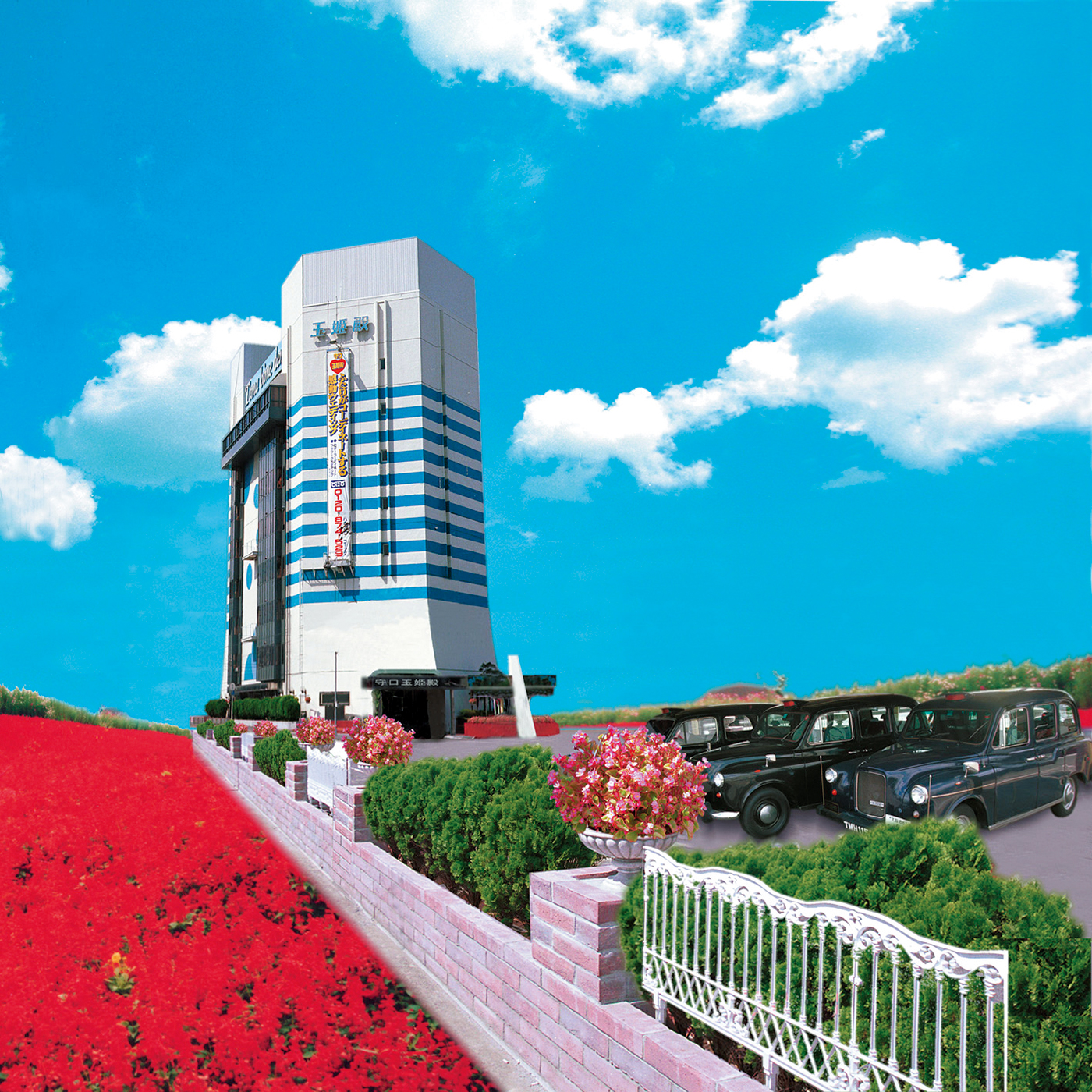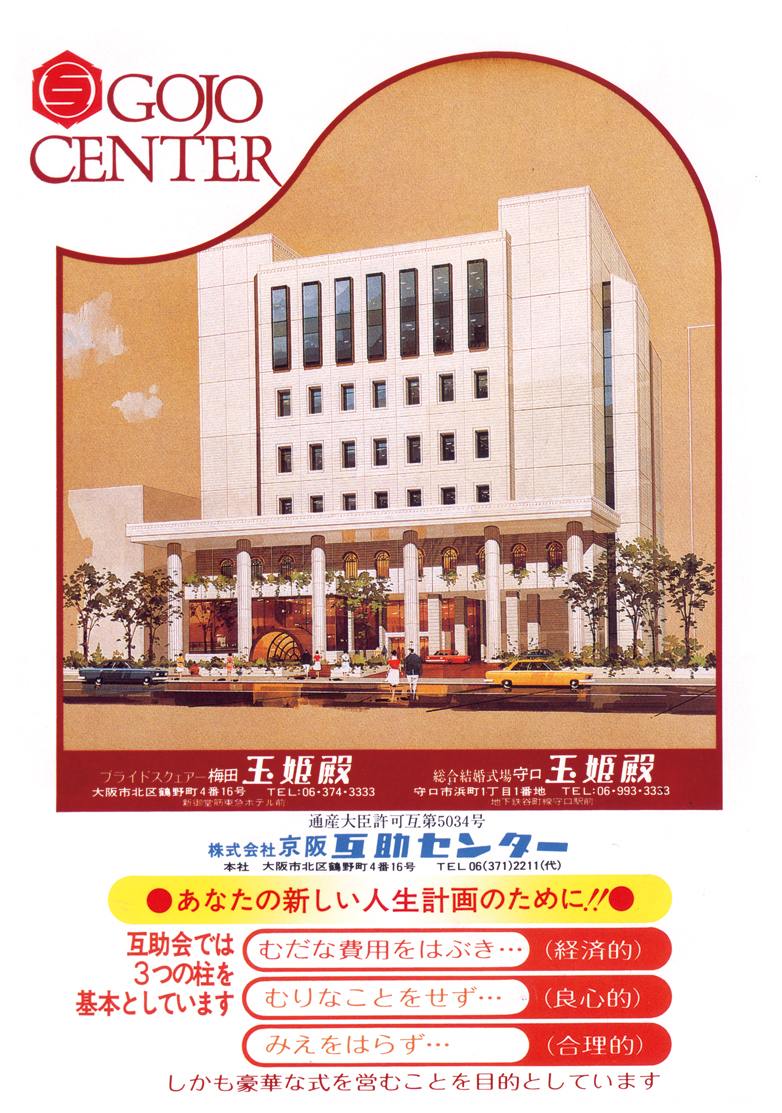 1982年1月にオープンした梅田玉姫殿は、20周年を迎えました。先代会長 齋藤近次郎が構想した「大阪の御堂筋に玉姫殿を建てる」は、1979年10月に起工式が行われ、創業10年目にして現実のものとなりました。敷地面積1,948㎡、延建築面積9,283㎡、地下1階、地上7階の建物の外観は、白を基調とした古代ギリシャ建築風の様式、内部は高空間を利用した超近代的な設備と内容をもつ結婚式場として、一躍大阪梅田の有名スポットとなりました。