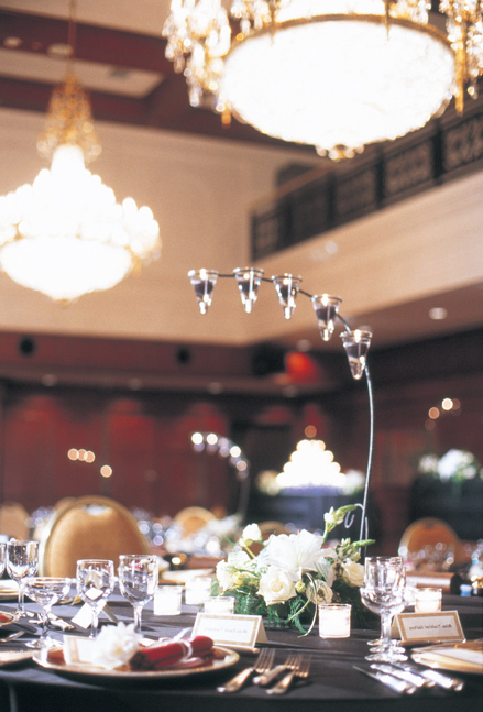 永年愛され親しまれてきた梅田玉姫殿人気バンケット「コスモス」は、オペラハウスをイメージしてリニューアルいたしました。2階総吹抜けのゆったりとした空間に、ボヘミアンクリスタルガラスのシャンデリアの明かりが繊細にきらめき、ステージのお二人を優しく包み込んでくれます。2021年現在も、多くの新郎新婦様からご支持いただき、多数のご披露宴を見届けています。